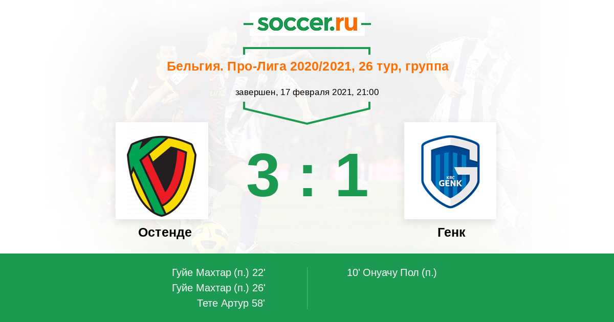 Остенде - Генк: обзор матча 17 февраля 2021
