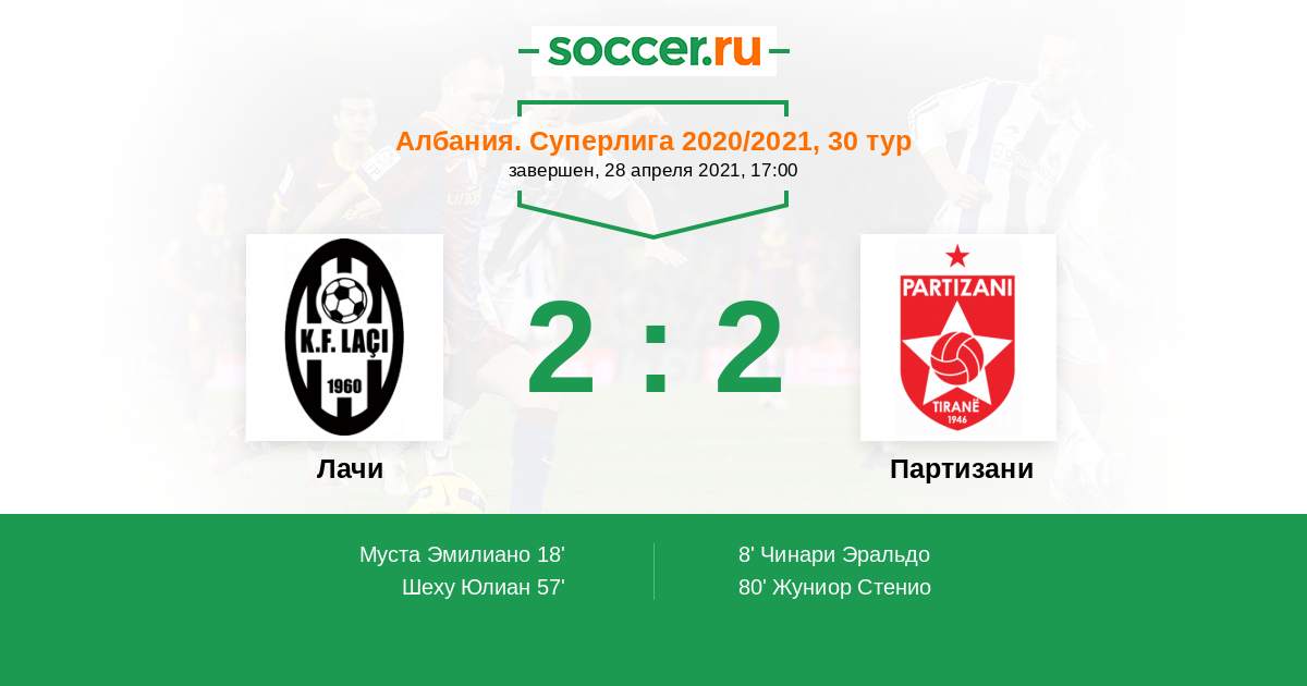 Лачи - Партизани: обзор матча 28 апреля 2021