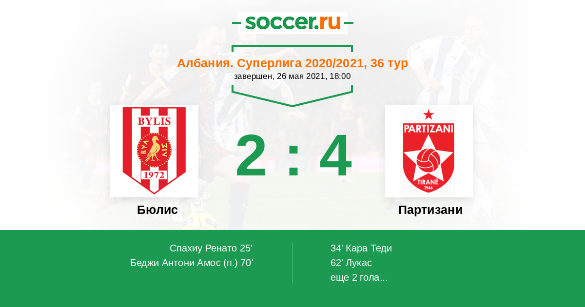 Бюлис - Партизани: обзор матча 26 мая 2021