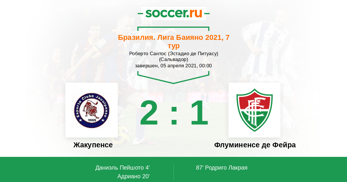 Жакупенсе - Флуминенсе де Фейра: обзор матча 5 апреля 2021