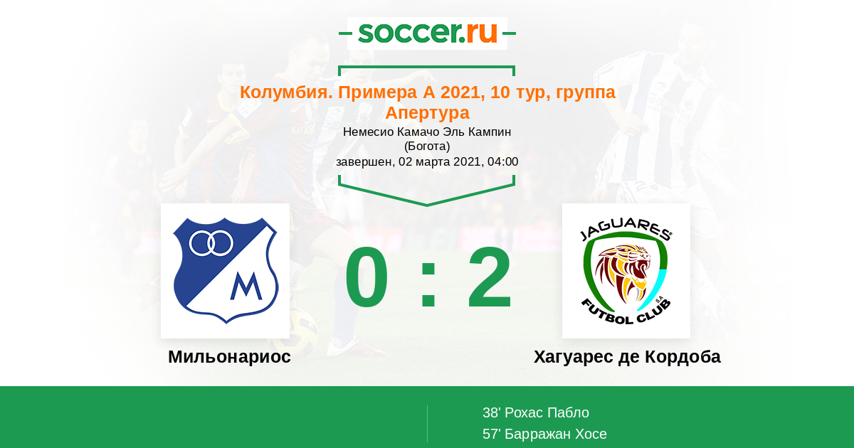 Мильонариос - Хагуарес де Кордоба: обзор матча 2 марта 2021