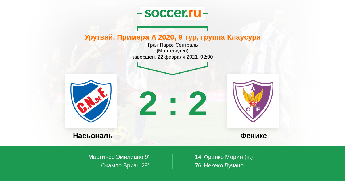 Насьональ - Феникс: обзор матча 22 февраля 2021