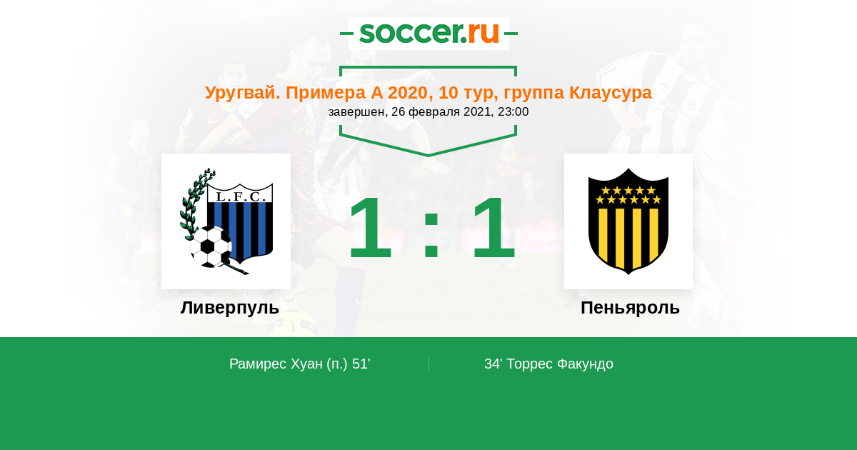 Ливерпуль - Пеньяроль: обзор матча 26 февраля 2021