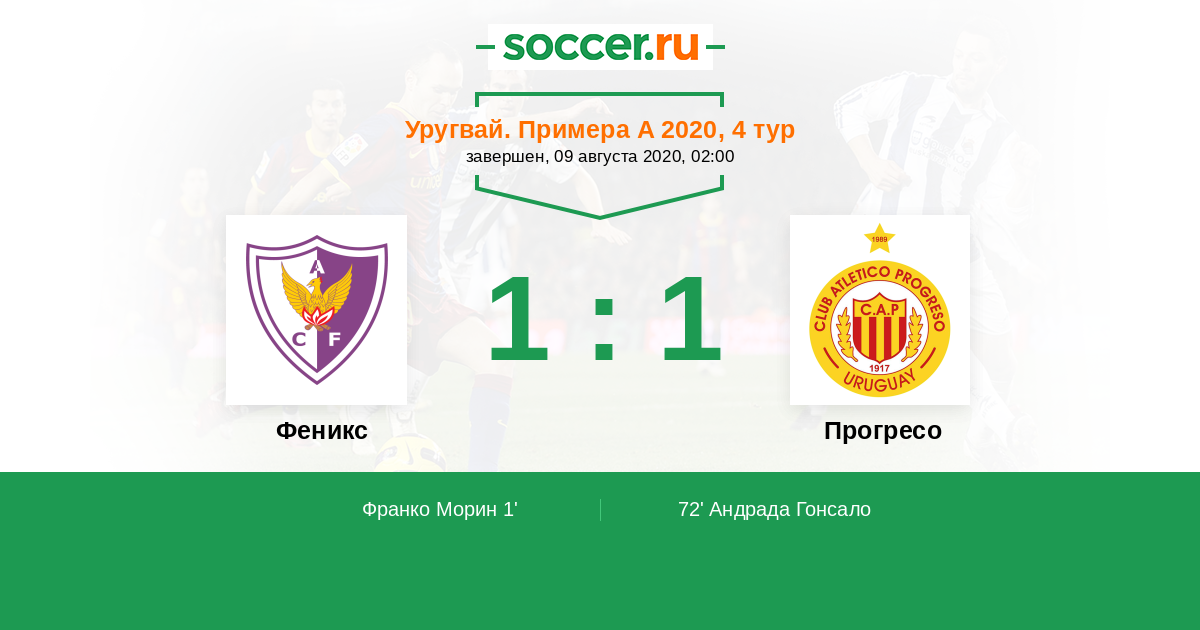Феникс - Прогресо: обзор матча 9 августа 2020