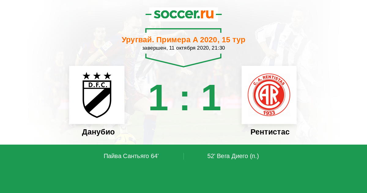 Данубио - Рентистас: обзор матча 11 октября 2020