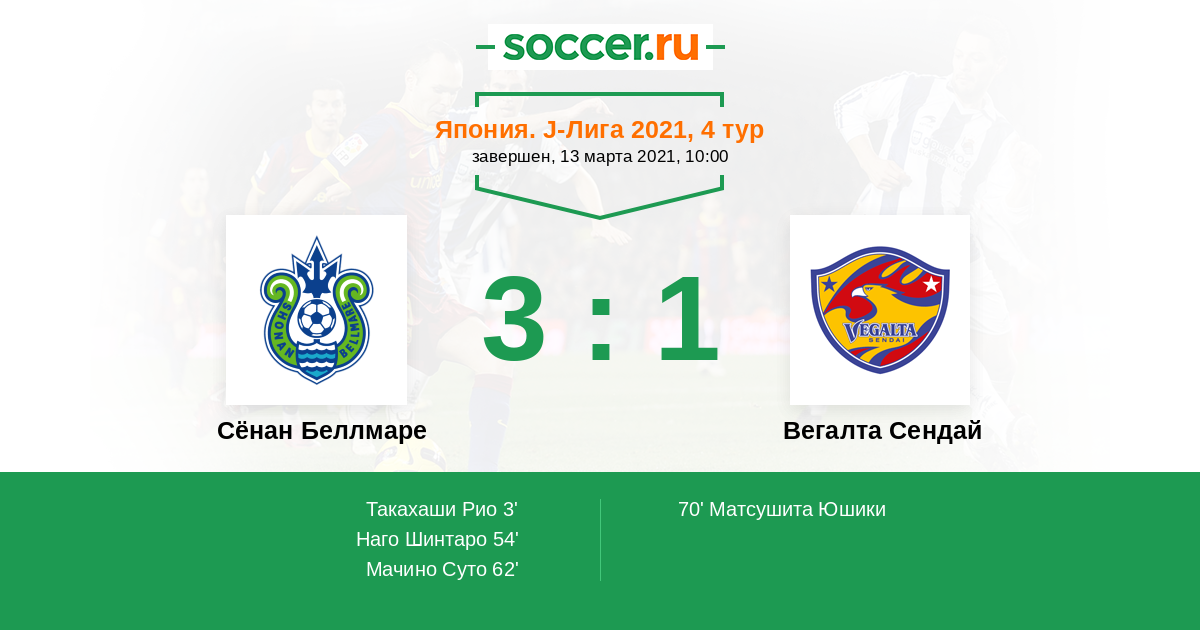 Сёнан Беллмаре - Вегалта Сендай: обзор матча 13 марта 2021