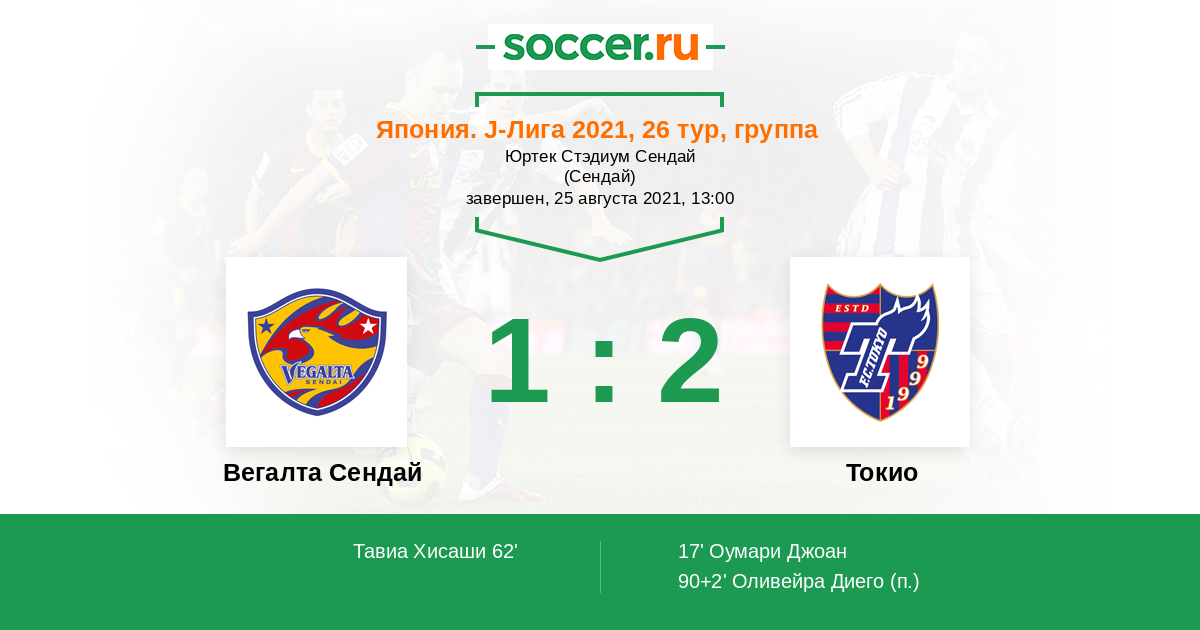 Вегалта Сендай - Токио: обзор матча 25 августа 2021