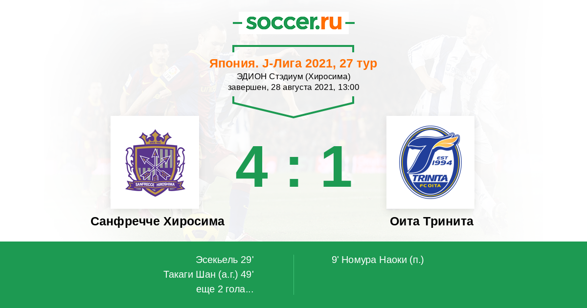 Санфречче Хиросима - Оита Тринита: обзор матча 28 августа 2021