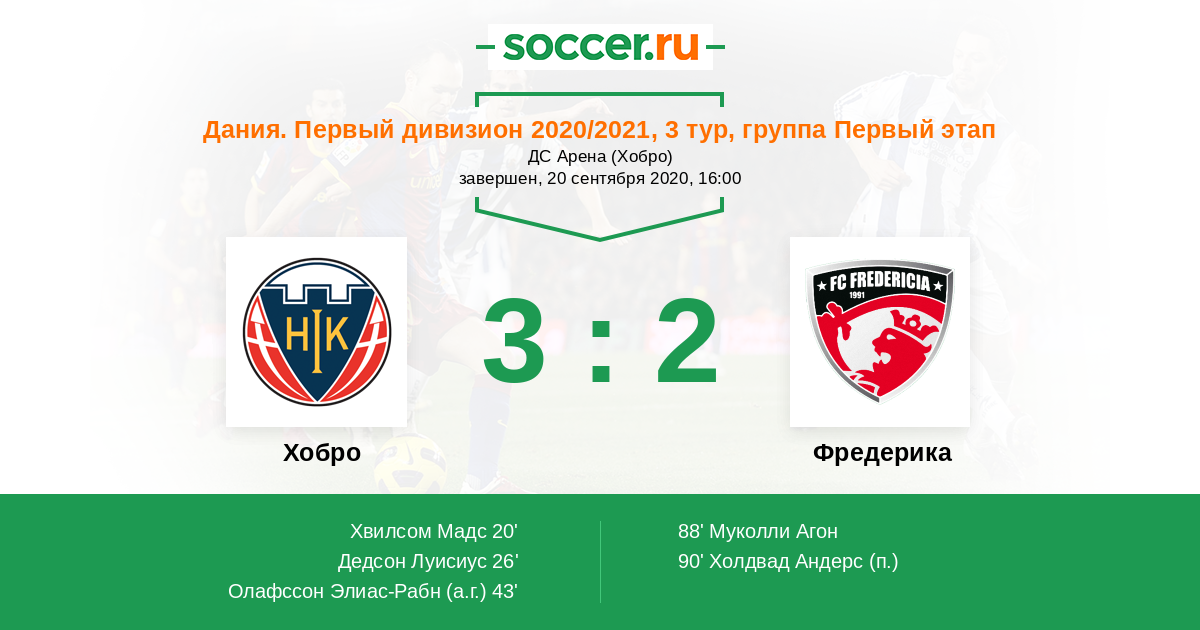 Хобро - Фредерика: обзор матча 20 сентября 2020