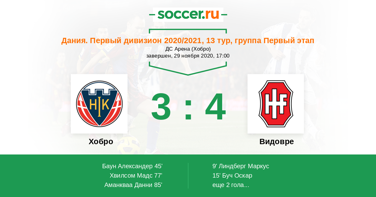 Хобро - Видовре: обзор матча 29 ноября 2020