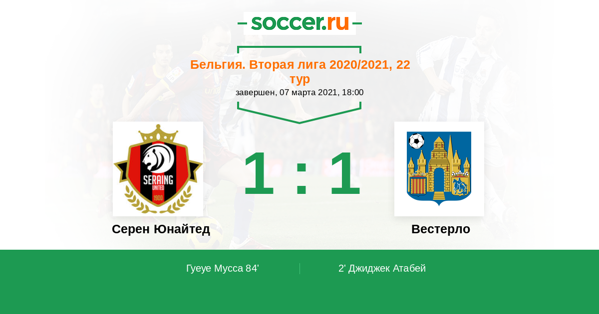 Серен Юнайтед - Вестерло: обзор матча 7 марта 2021