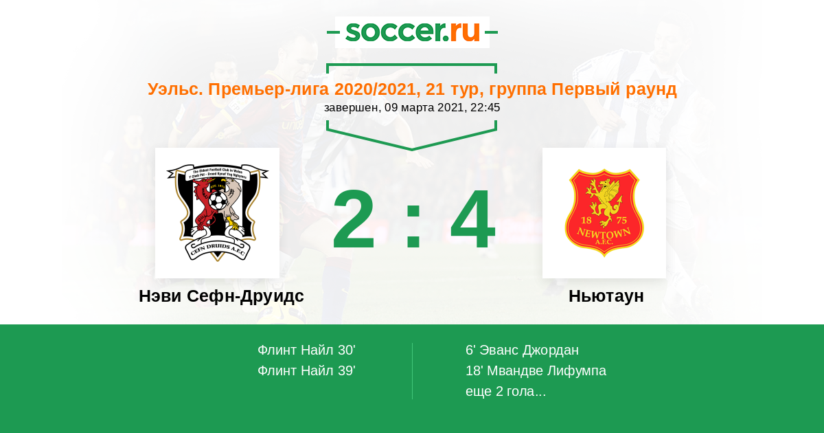 Нэви Сефн-Друидс - Ньютаун: обзор матча 9 марта 2021