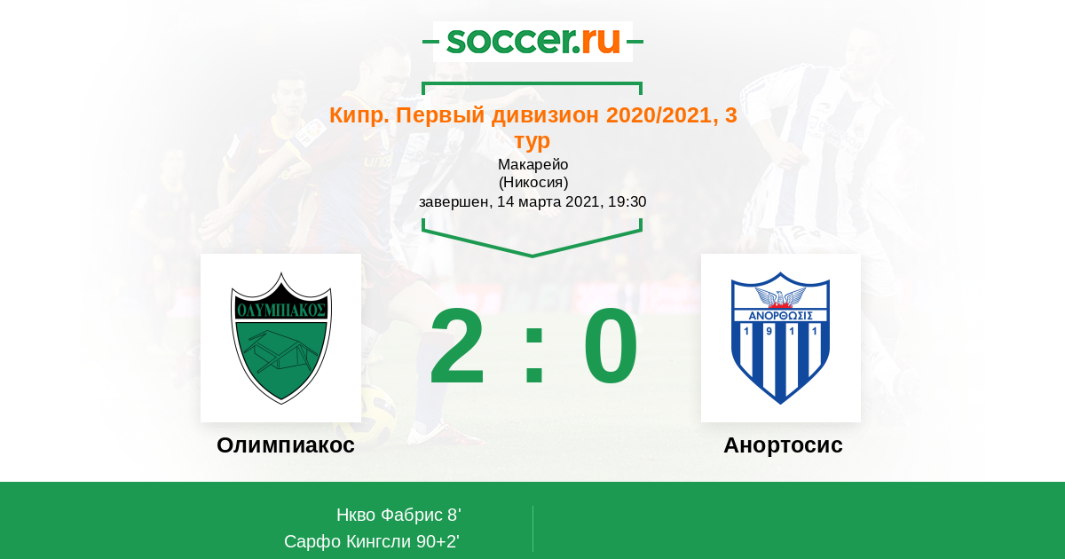 Олимпиакос - Анортосис: обзор матча 14 марта 2021