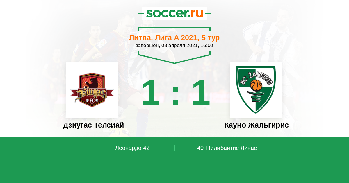 Дзиугас Телсиай - Кауно Жальгирис: обзор матча 3 апреля 2021