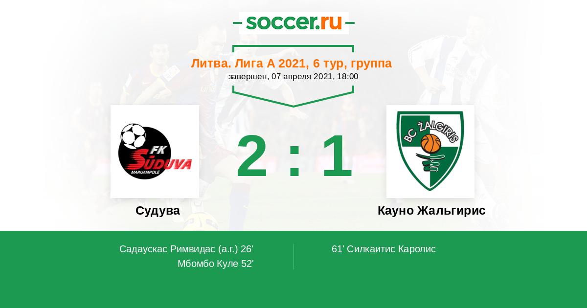 Судува - Кауно Жальгирис: обзор матча 7 апреля 2021