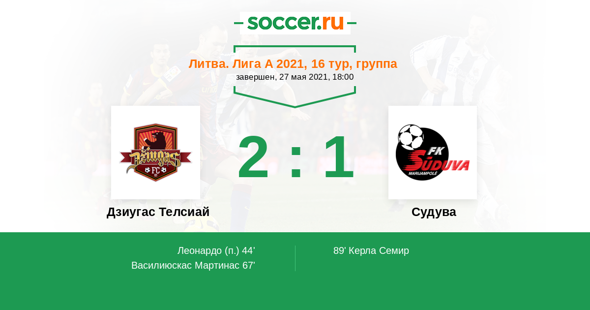 Дзиугас Телсиай - Судува: обзор матча 27 мая 2021