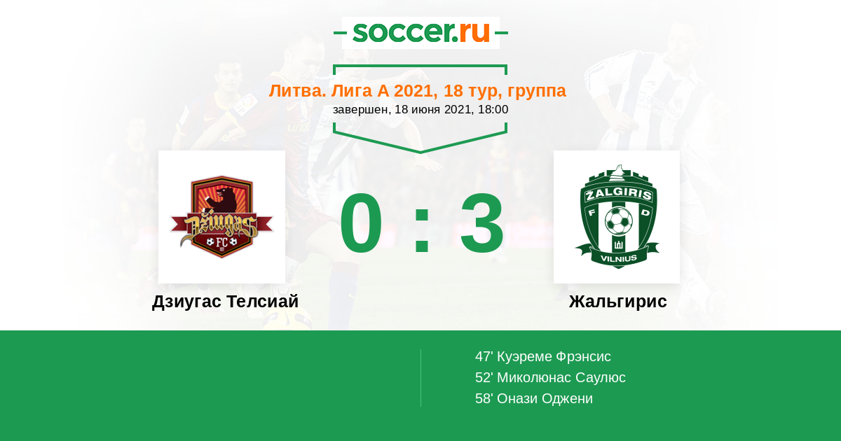 Дзиугас Телсиай - Жальгирис: обзор матча 18 июня 2021