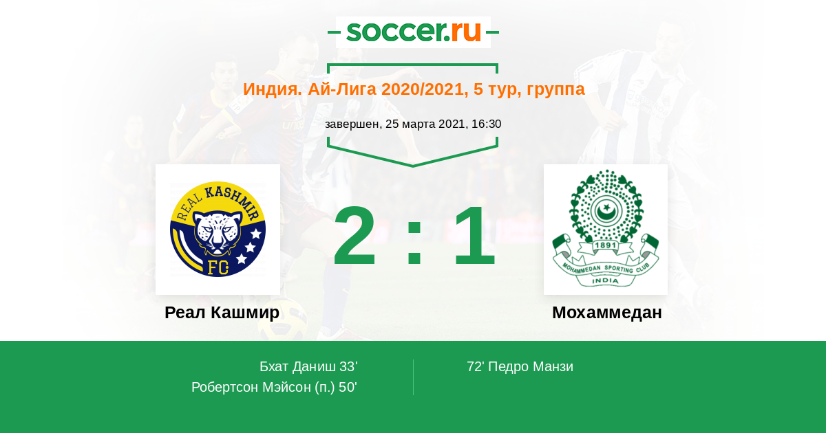 Реал Кашмир - Мохаммедан: обзор матча 25 марта 2021