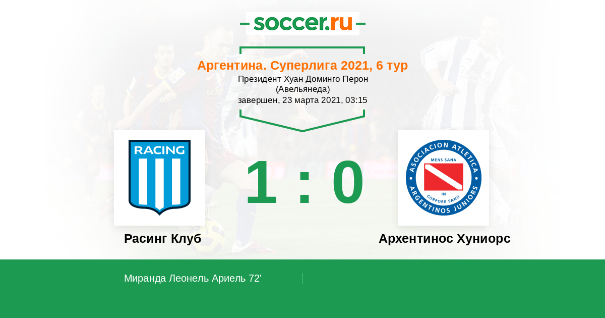 Расинг Клуб - Архентинос Хуниорс: обзор матча 23 марта 2021