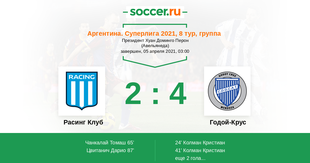 Расинг Клуб - Годой-Крус: обзор матча 5 апреля 2021