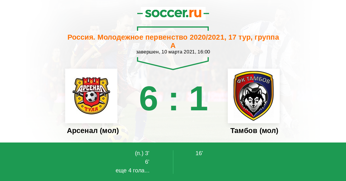 Арсенал (мол) - Тамбов (мол): обзор матча 10 марта 2021