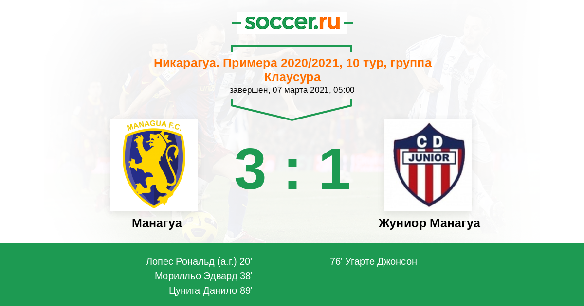Манагуа - Жуниор Манагуа: обзор матча 7 марта 2021