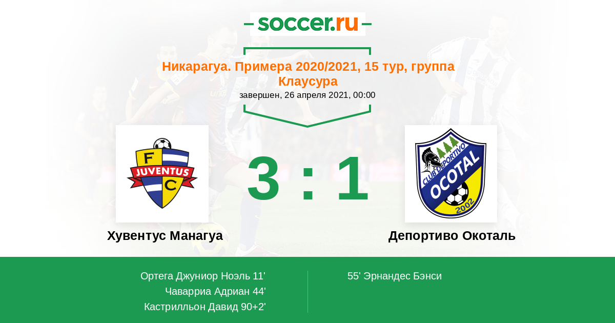 Хувентус Манагуа - Депортиво Окоталь: обзор матча 26 апреля 2021
