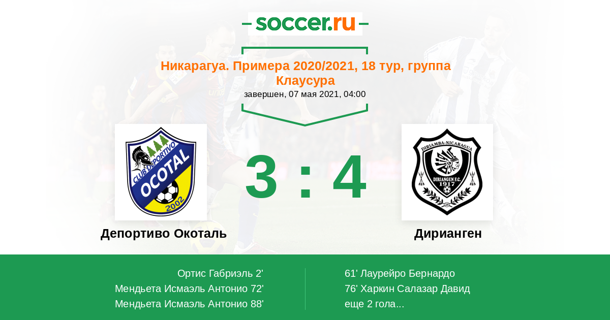 Депортиво Окоталь - Дирианген: обзор матча 7 мая 2021