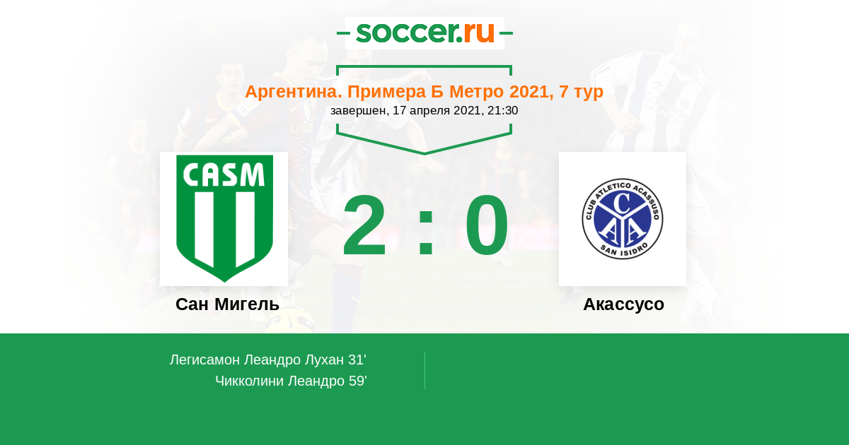Сан Мигель - Акассусо: обзор матча 17 апреля 2021