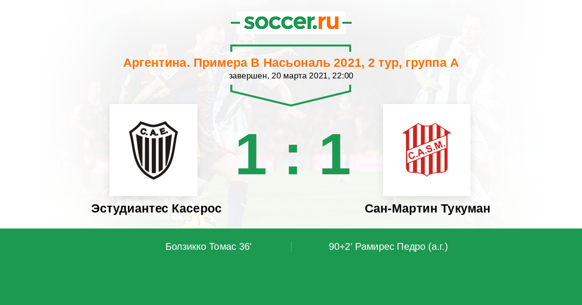 Эстудиантес Касерос - Сан-Мартин Тукуман: обзор матча 20 марта 2021