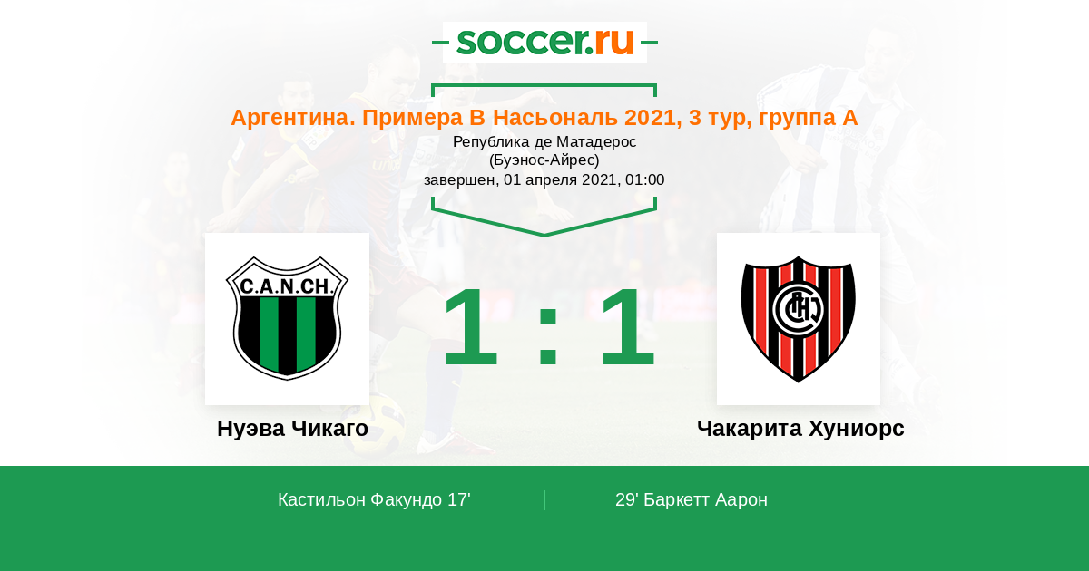 Нуэва Чикаго - Чакарита Хуниорс: обзор матча 1 апреля 2021