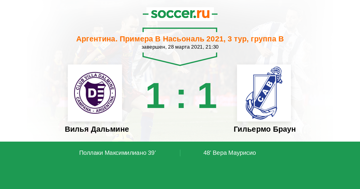 Вилья Дальмине - Гильермо Браун: обзор матча 28 марта 2021