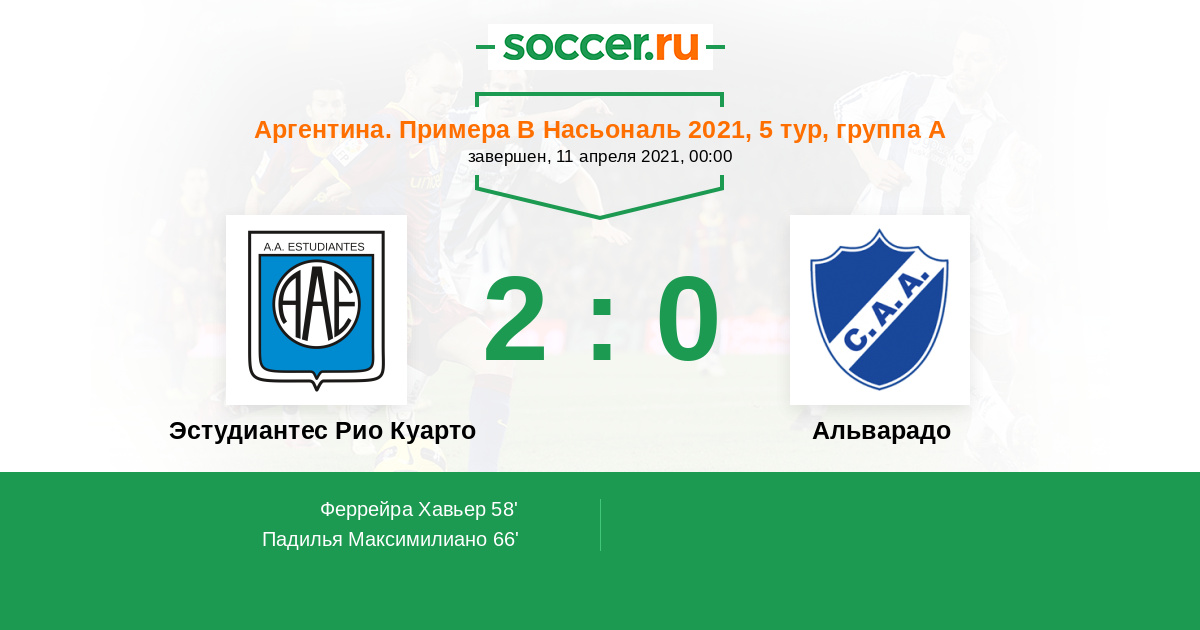 Эстудиантес Рио Куарто - Альварадо: обзор матча 11 апреля 2021