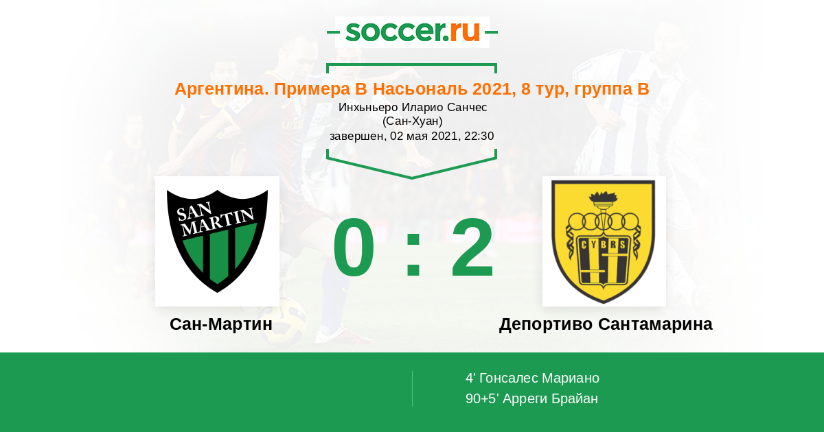 Сан-Мартин - Депортиво Сантамарина: обзор матча 2 мая 2021