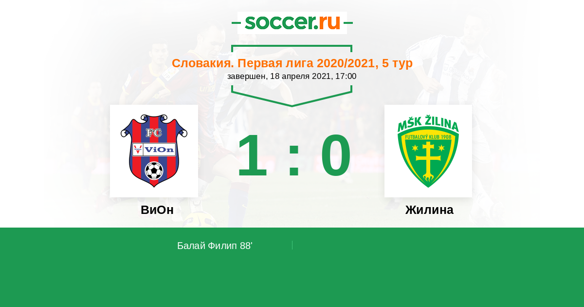 ВиОн - Жилина: обзор матча 18 апреля 2021