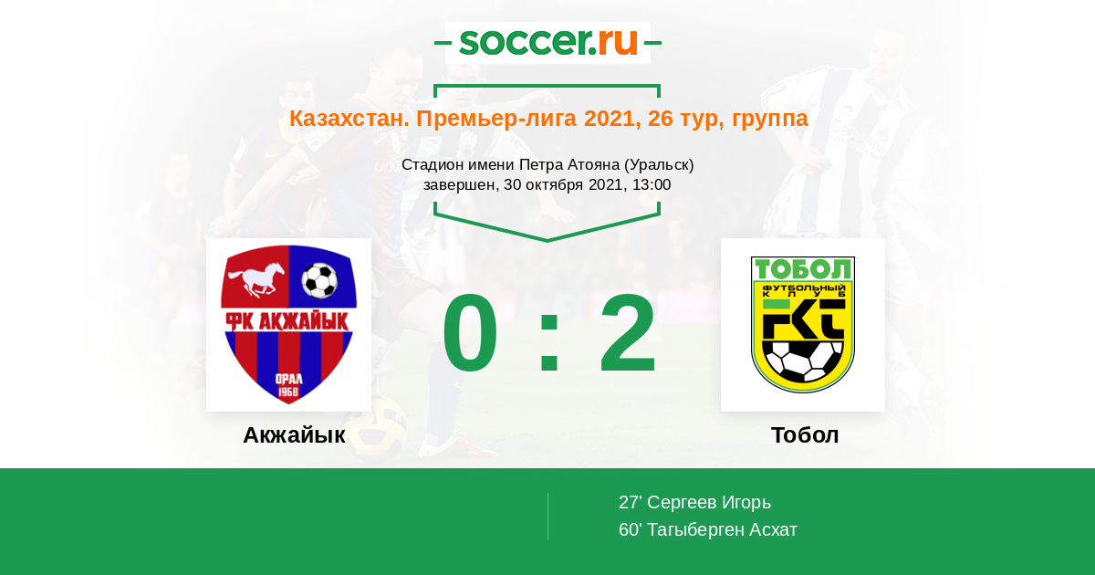 Акжайык - Тобол: обзор матча 30 октября 2021