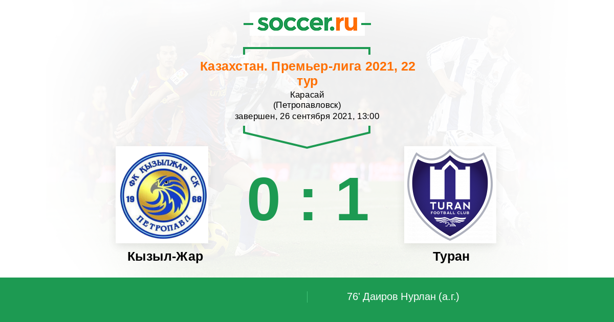 Кызыл-Жар - Туран: обзор матча 26 сентября 2021