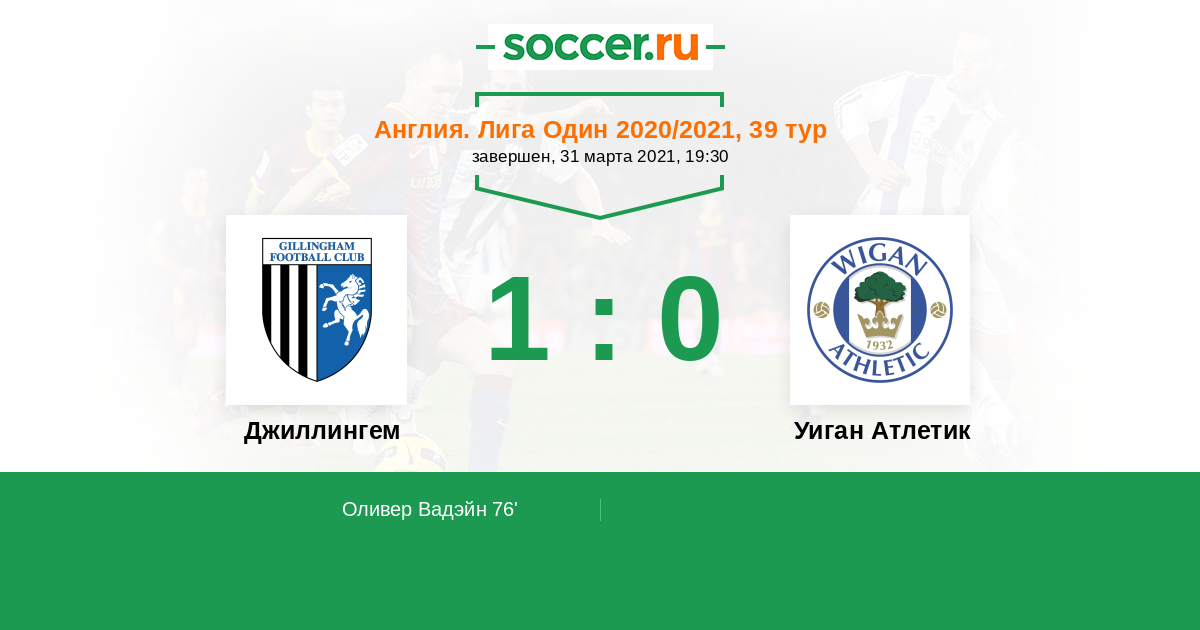 Джиллингем - Уиган Атлетик: обзор матча 31 марта 2021