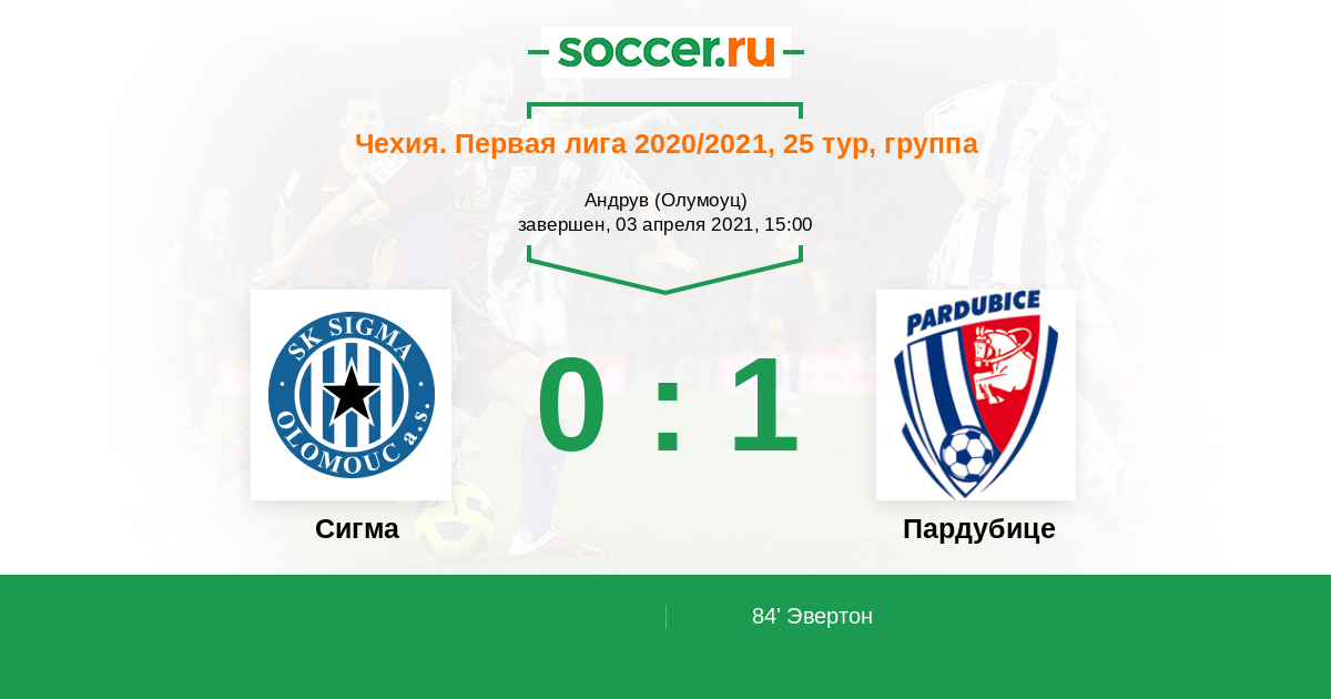 Сигма - Пардубице: обзор матча 3 апреля 2021