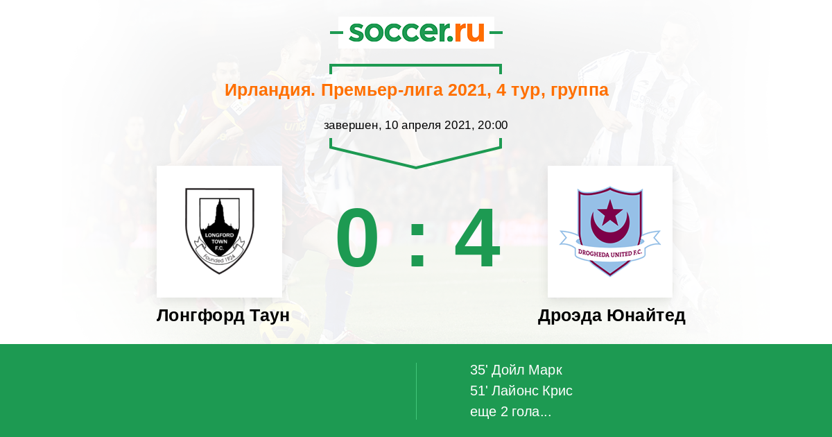 Лонгфорд Таун - Дроэда Юнайтед: обзор матча 10 апреля 2021