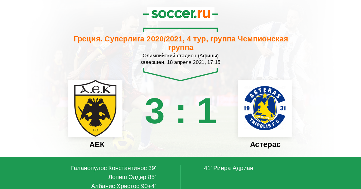 АЕК - Астерас: обзор матча 18 апреля 2021