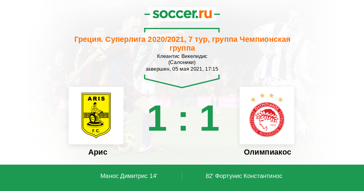 Арис - Олимпиакос: обзор матча 5 мая 2021