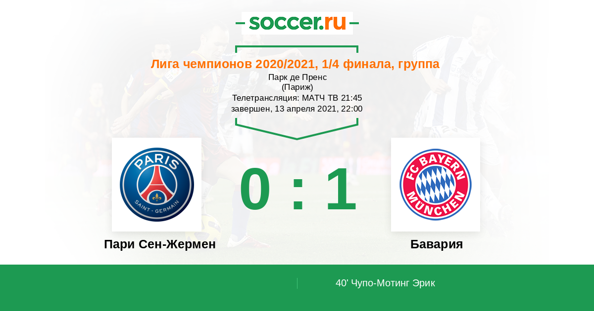 Здравствуйте, уважаемые любители футбола. Приглашаем вас на текстовую онлайн-трансляцию ответного поединка 1/4 финала Лиги чемпионов, в котором "Бавария" сыграет против "Пари Сен-Жермен" на выезде. Судейскую бригаду возглавит Даниэле Орсато (Италия).