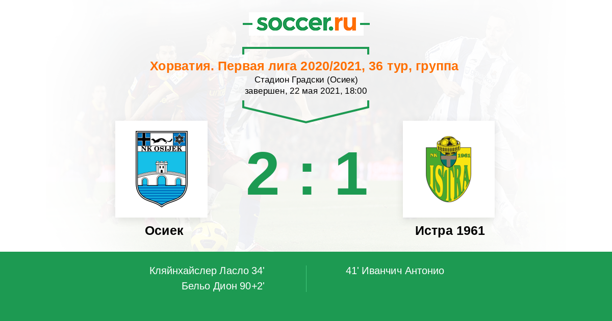 Осиек - Истра 1961: обзор матча 22 мая 2021