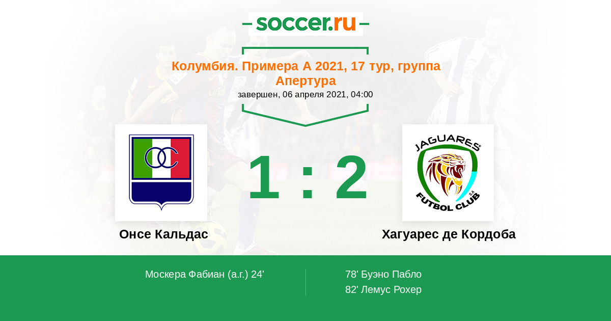 Онсе Кальдас - Хагуарес де Кордоба: обзор матча 6 апреля 2021