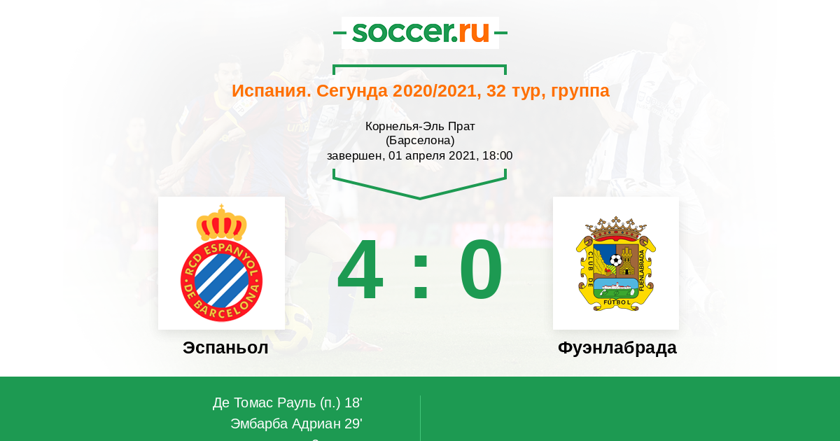 Эспаньол - Фуэнлабрада: обзор матча 1 апреля 2021