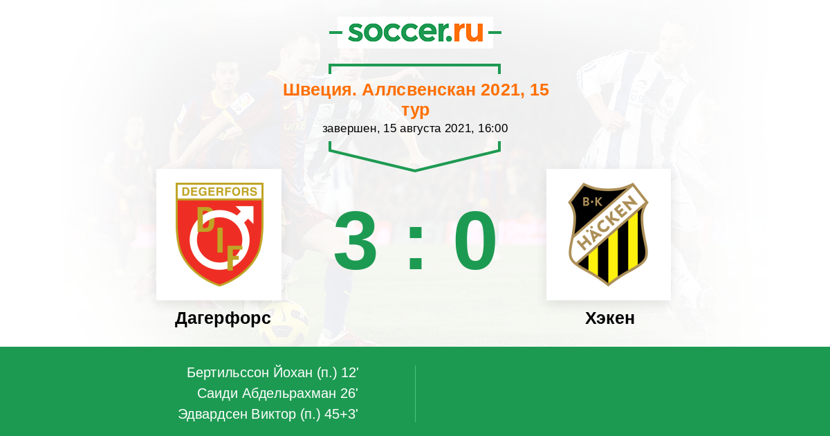 Дагерфорс - Хэкен: обзор матча 15 августа 2021