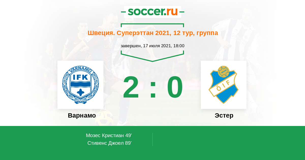 Варнамо - Эстер: обзор матча 17 июля 2021