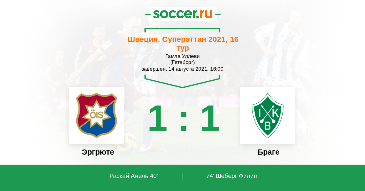 Эргрюте - Браге: обзор матча 14 августа 2021