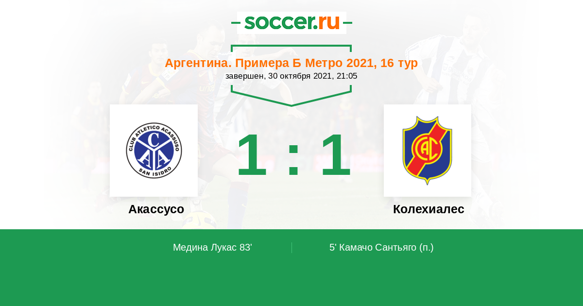 Акассусо - Колехиалес: обзор матча 30 октября 2021